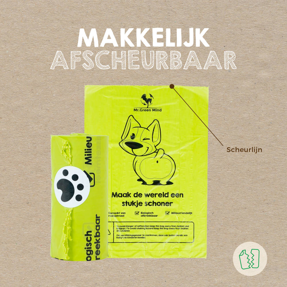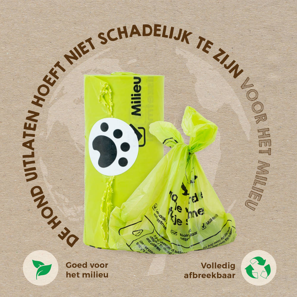 Deze biologisch afbreekbare hondenpoepzakjes zijn stevig, geurloos en volledig composteerbaar. Zo ruim je op zonder schuldgevoel, goed voor je hond én voor de planeet. Perfect voor wie elke dag netjes opruimt, maar liever geen plastic verspilt.
