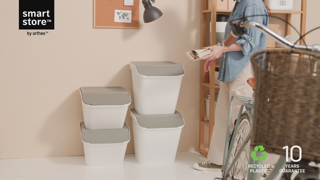Slim recycleren zonder rommel? De Stack It-boxen van SmartStore maken het je makkelijk. Dankzij het deksel met klep open je ze vlot van voren, zelfs als ze gestapeld zijn. Kies uit maat M (37L) of L (51L) – en bouw je eigen recyclingsysteem dat netjes oogt én werkt.