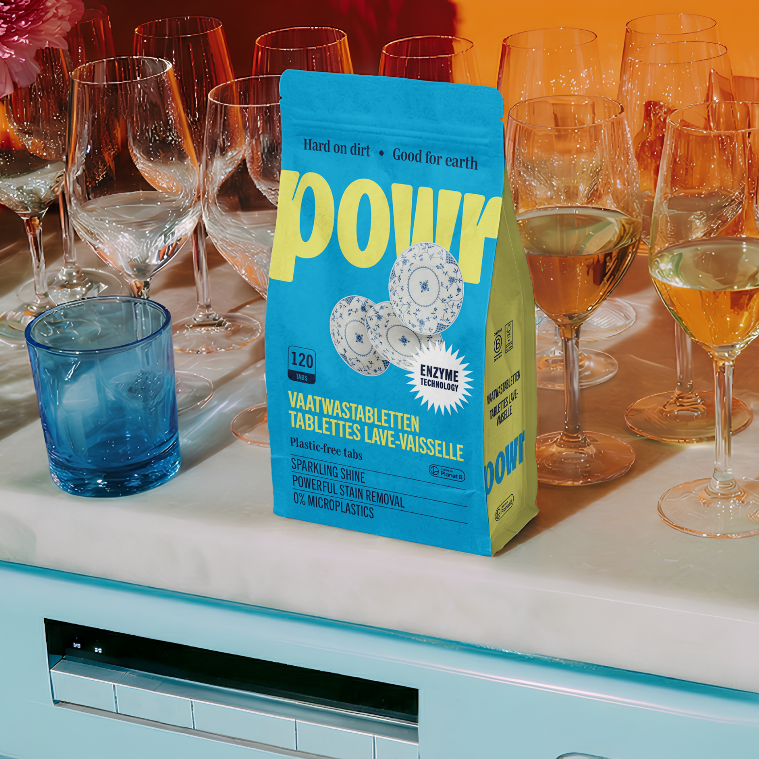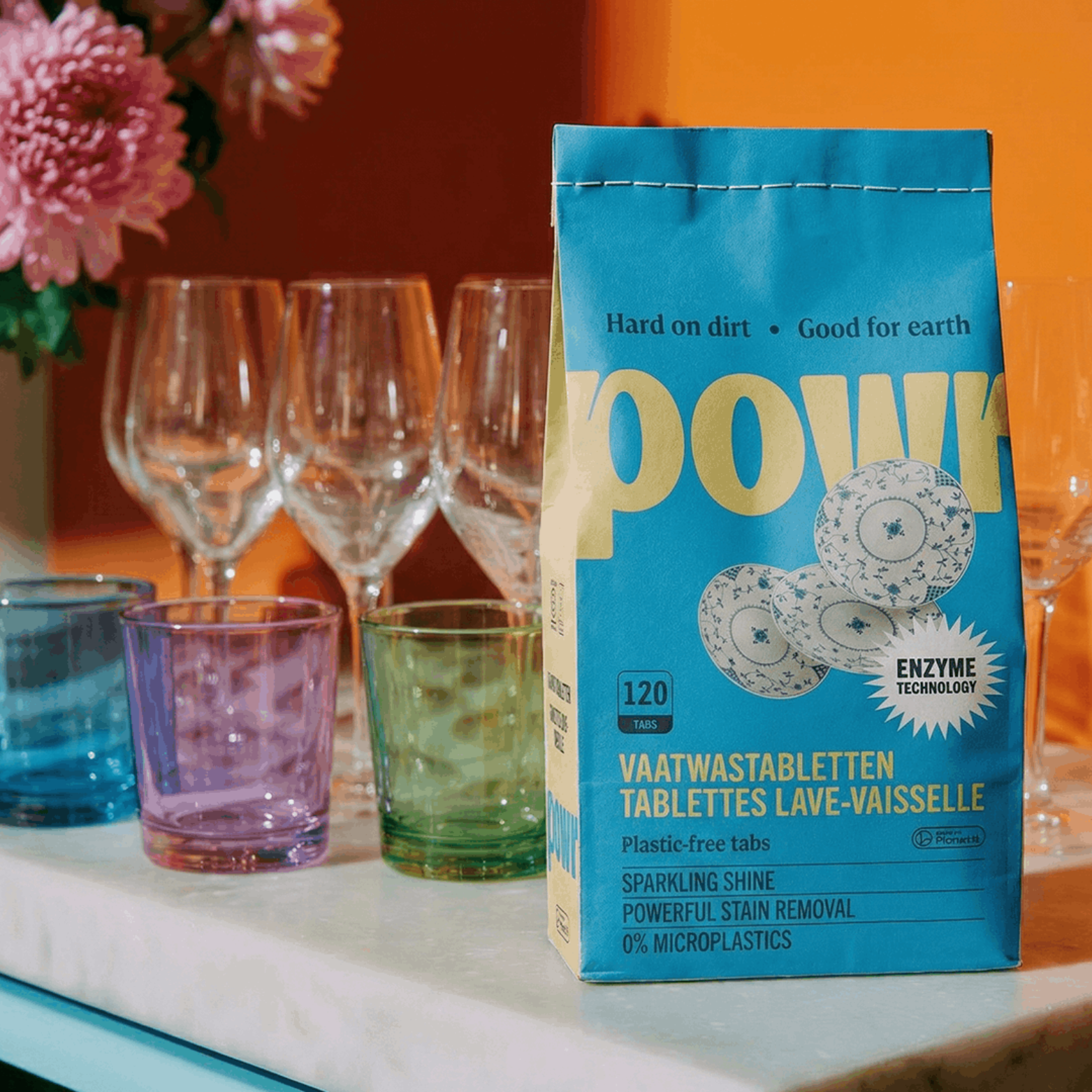 Deze POWR vaatwastabletten geven je vaat een grondige, sprankelende reiniging zonder plastic of microplastics. Ze werken met enzymen en zuurstofkracht om vet, zetmeel en aangekoekte resten te lijf te gaan. Perfect voor wie een krachtige én duurzame vaatwasroutine wil.
