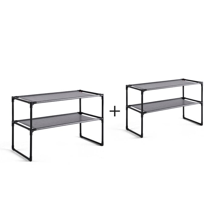 Schoenen die rondslingeren? Met dit stevige metalen schoenenrek hou je alles netjes op z’n plek. Het rek heeft twee planken én is stapelbaar, zo maak je optimaal gebruik van je ruimte, hoe klein ook.