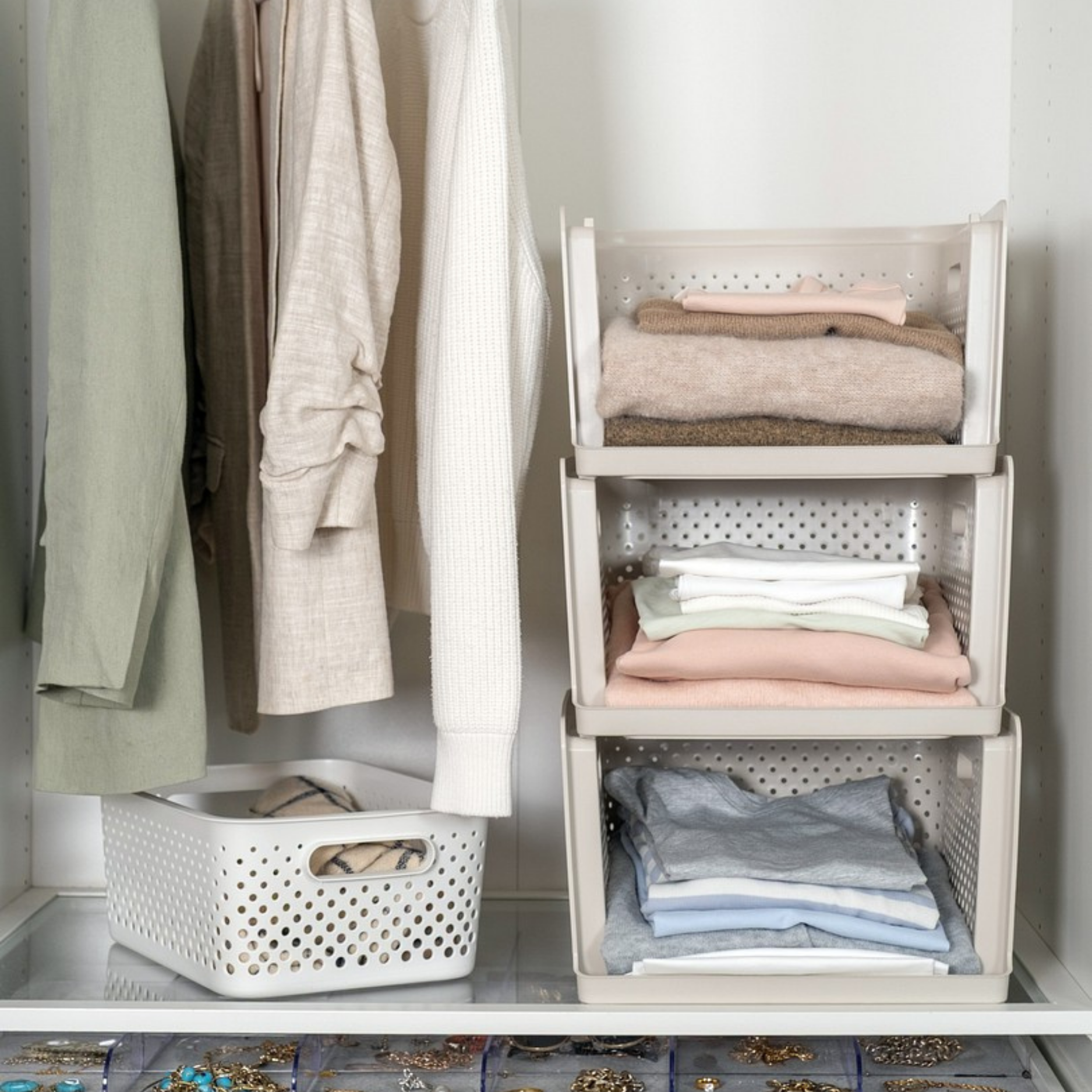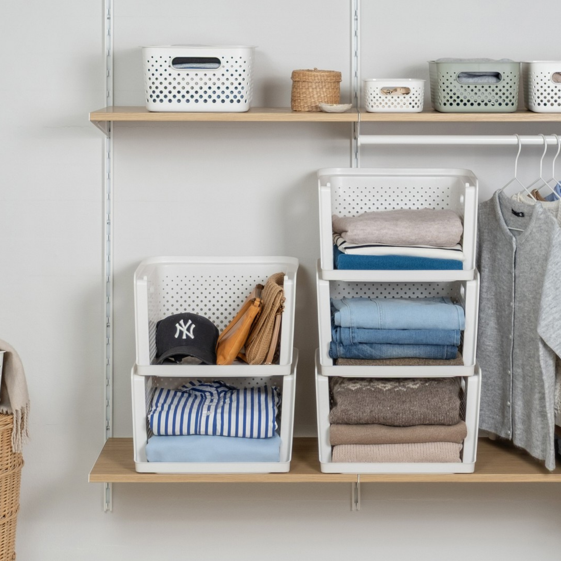 - Stapel meerdere mandjes op elkaar en bouw je eigen opbergtoren op maat