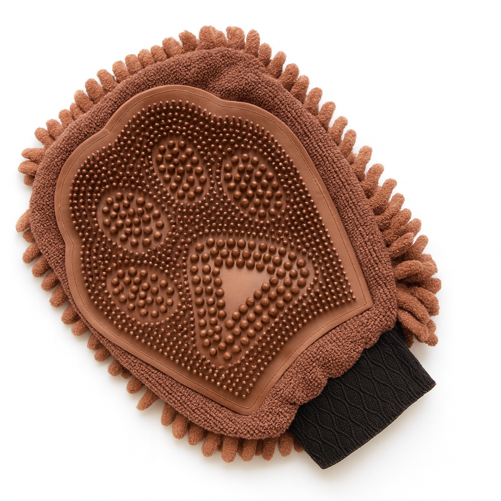 Geef je viervoeter een snelle, zachte opfrisbeurt die aanvoelt als een massage. De microvezelzijde neemt vuil en vocht op, terwijl de borstelszijde losse haren verwijdert voor een zachte, glanzende vacht.