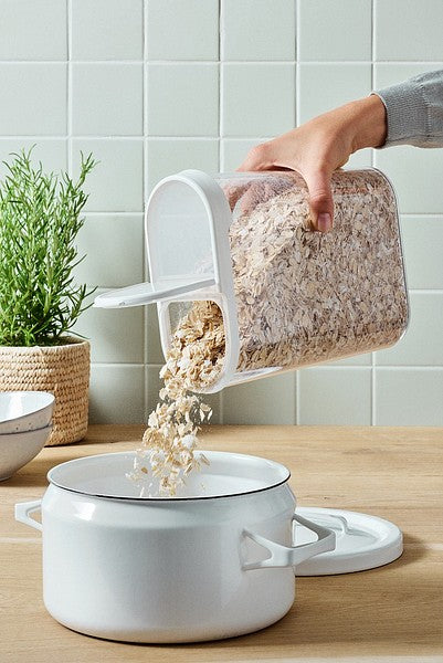 Veel opbergruimte, weinig gedoe: de SmartStore™ Flip voorraadbus van 2,4 liter is perfect voor bloem, pasta of granola. Dankzij het slimme schenklipje giet je netjes en zonder geknoei, en het transparante ontwerp houdt je voorraad in één oogopslag zichtbaar. Stapelbaar en vaatwasserbestendig.