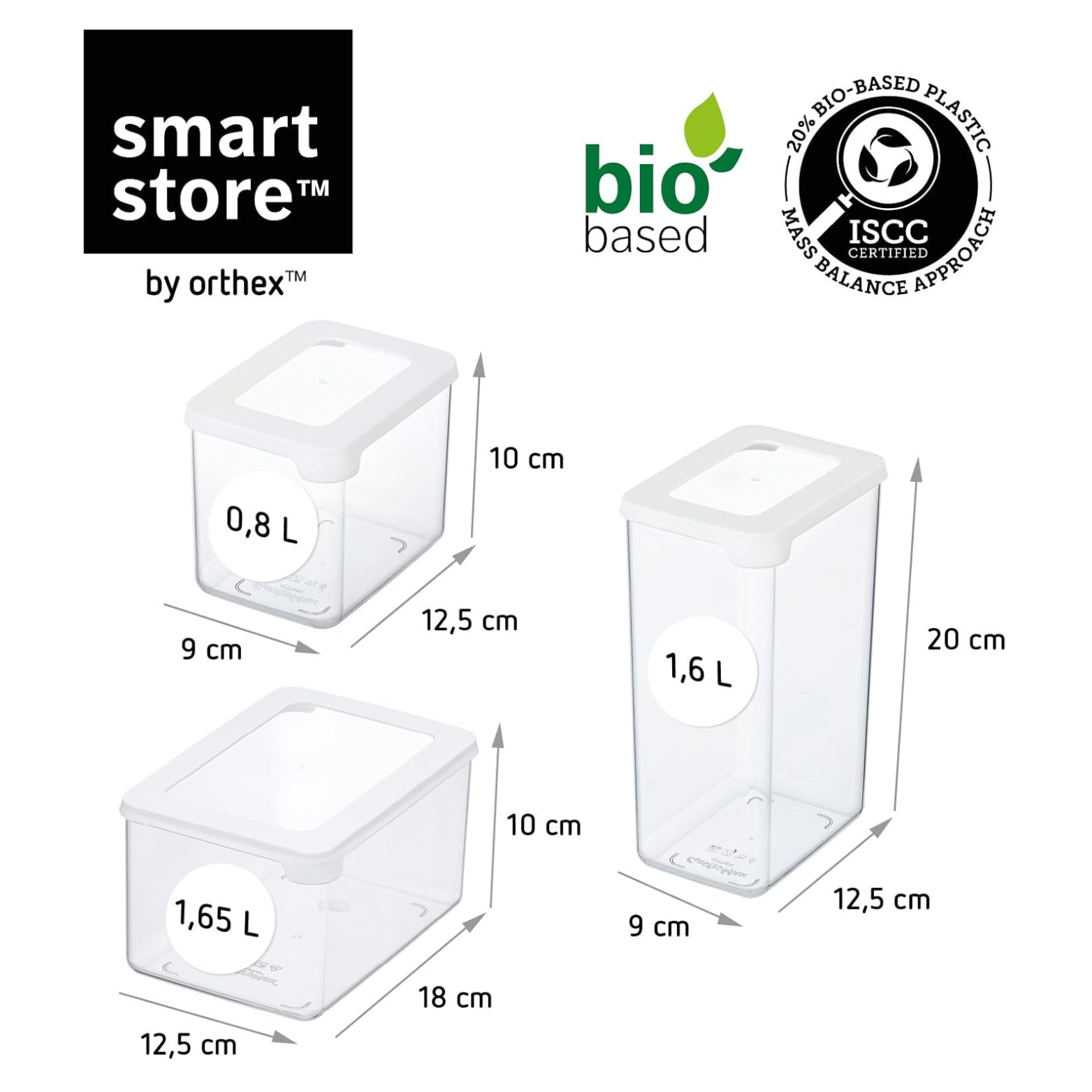 Deze set van 5 luchtdichte SmartStore™-dozen is ideaal voor het bewaren van droge of verse voeding. Dankzij het transparante ontwerp zie je in één oogopslag wat erin zit, en de stevige klikdeksels zorgen voor een betrouwbare afsluiting. Geschikt voor koelkast, diepvriezer, microgolf én vaatwasser.