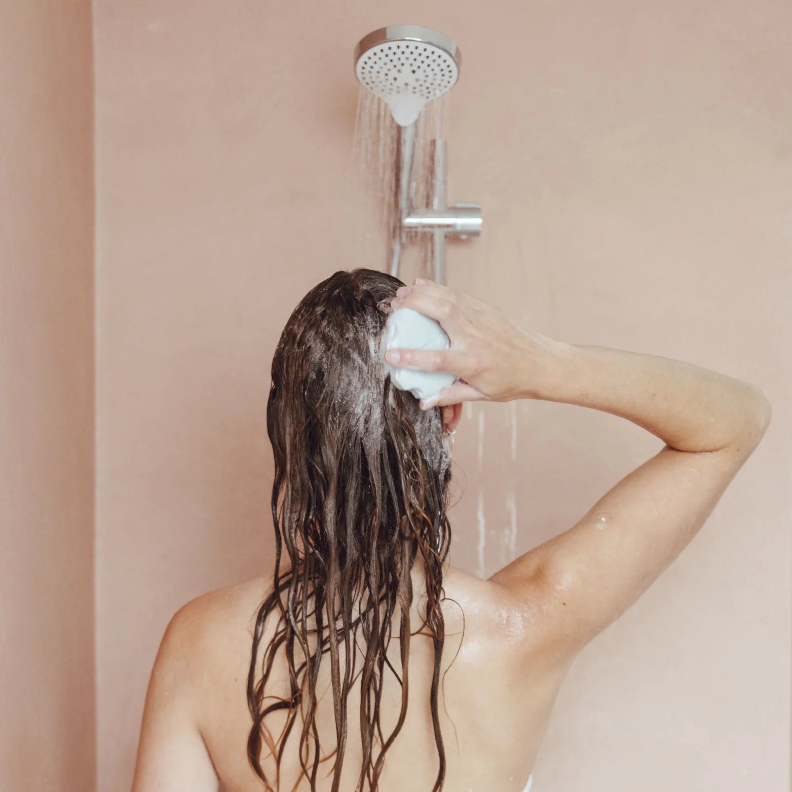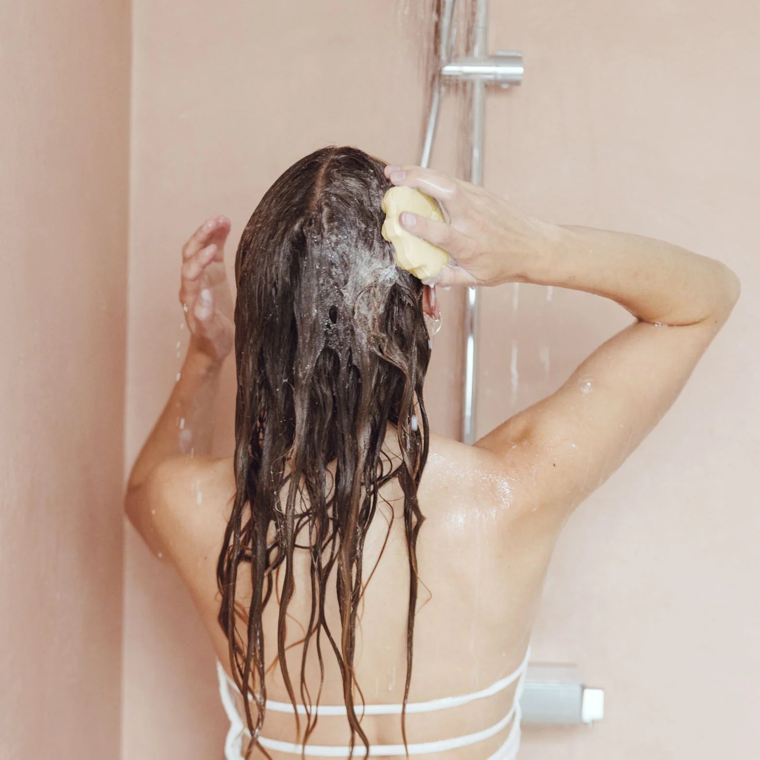- Wrijf de bar over je hoofdhuid of tussen je handen tot er