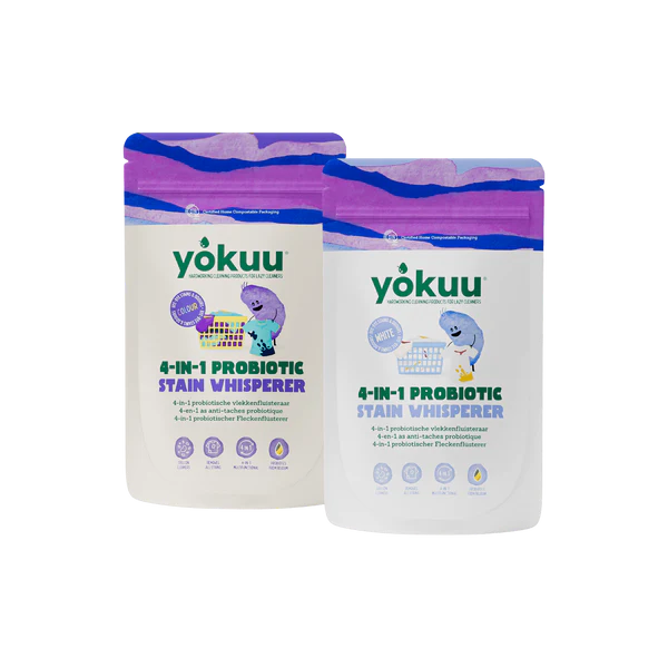 De Vlekkenfluisteraar komt in twee versies: eentje voor witte was en eentje voor kleur. De witte krijgt een extra powerboost van natuurlijk bleekmiddel (soda + zuurstof) om vlekken op te lichten en je wit écht wit te houden. De gekleurde is iets zachter, zonder bleekmiddel – zo blijven je kleuren mooi levendig. Wit wordt stralend, kleur blijft kleur. Da’s pas fluisterwerk.